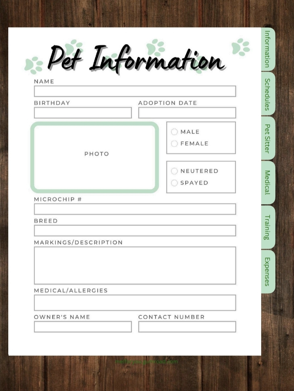 ○ Pet Sitter Notes: Handy reference when you’re away.