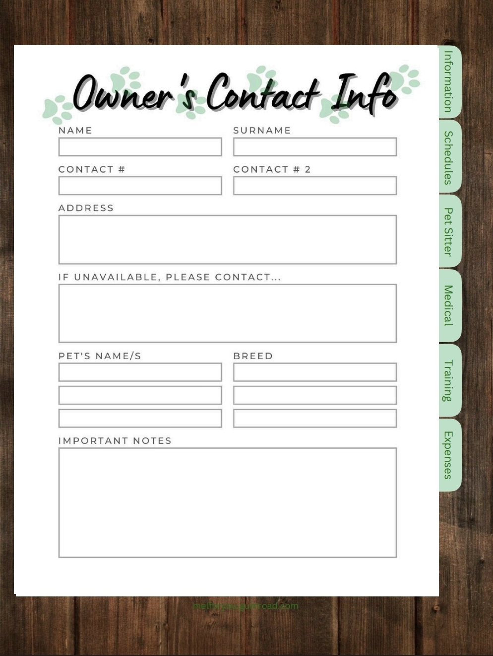 Whether you’re a pet parent, sitter, or foster carer, this planner helps you stay on top of: